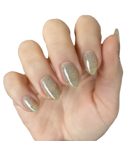 Shine on with the silver shimmer of this translucent olive polish.
